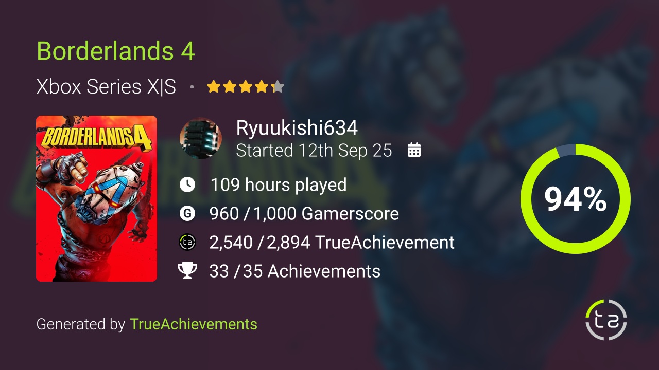 109 hours in Borderlands 4 and Iāve done nearly everything there is to do on one Vault Hunter (still have some Ripper gun kills to farm, but Iāll wait for the Halloween event and whatever other new content is coming). Time to begin working on getting the other three characters to 50!