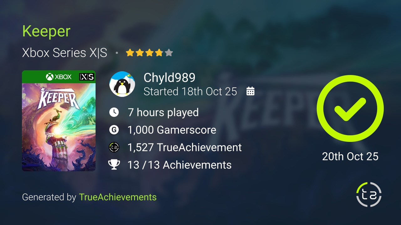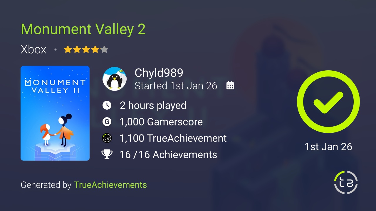 Completed Planet of Lana II. If you played the first one you get more of the same with more complex puzzles and more environments. Its a cinematic puzzle platformer so don’t expect tight controls like in a Mario game. Some puzzle timings could be more forgiving but overall this is a rather easy game and straightforward completion. No achievements for not dying here like in the first one.