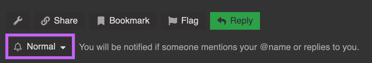 - Use the Tracking button on the bottom of the page and set which type of staying up with the topic activity you want: