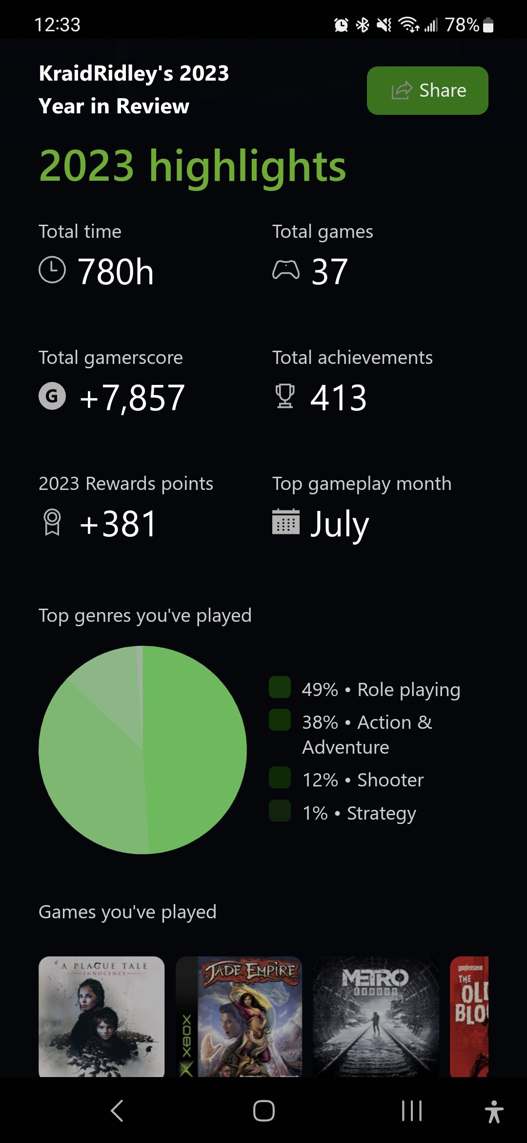 Slightly off numbers due to me hiding my cheevos for embargos, but yeah, I wish I had a bit more time to play this year.