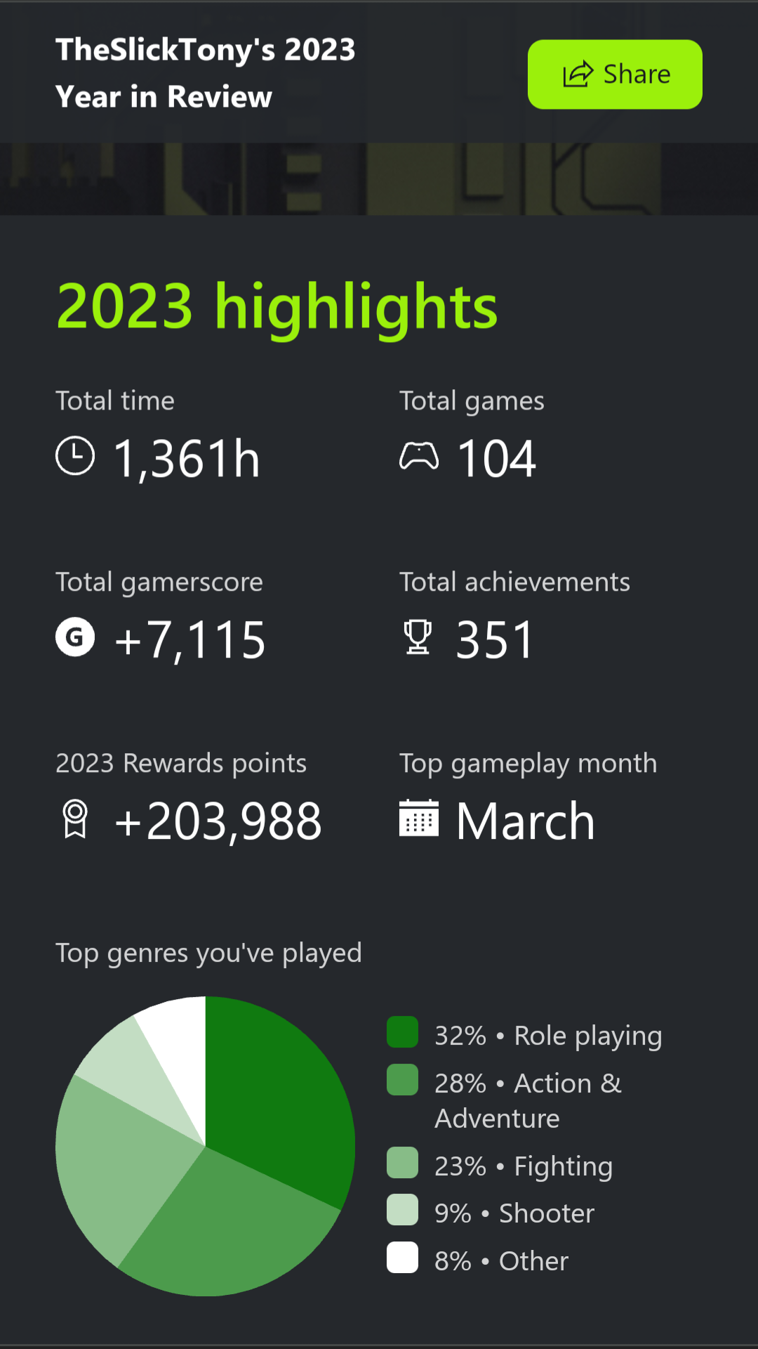 Couldn’t agree more; the stat nerd in me just loves this type of thing and the 20th Anno hub Xbox built for us was incredibly cool. Would love all the platform holders to make it a yearly thing as well - I think Nintendo has something a bit lighter on info but still the same general concept, through their Switch Online app. Would love to see which game won on my Playstation play time this year, I juggled a bit and finished none lol.