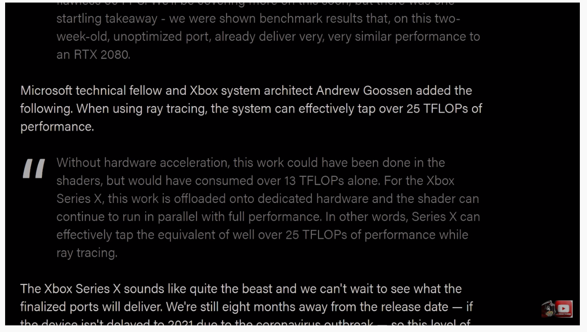 Then he goes on to say “don’t go around talking about XSX has 25 tflops of power” the guy he siting was talking theoreticals and it only had to do with ray tracing which is stated right in the video.