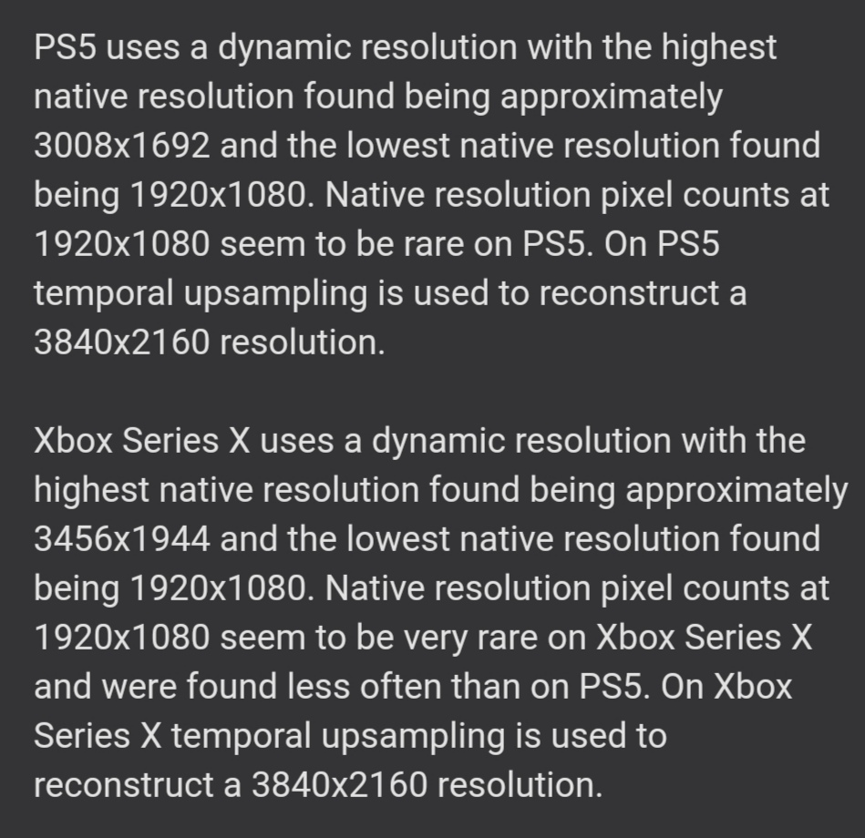 This definitely goes to the Series X > PS5 group. Series X has a 30% higher resolution than PS5 and the same frame rate.