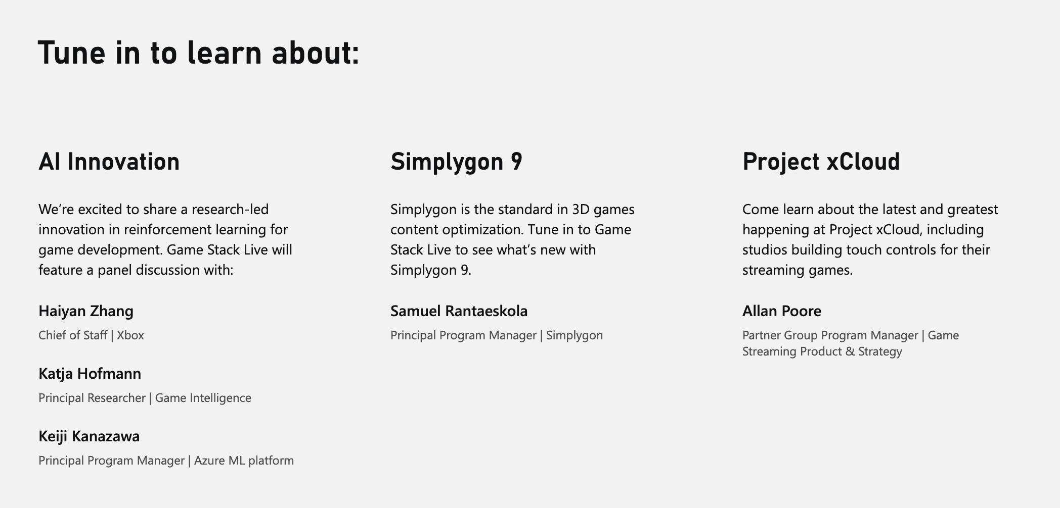 AI session seems to be about using games to advance AI research. I don’t expect them to talk about new tech stack.