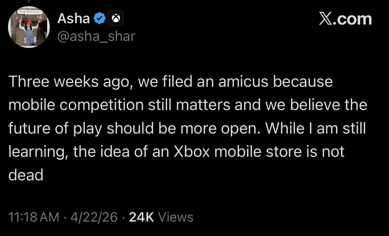 The problem is ultimately how locked down Apple and Google have made their mobile operating systems. And it absolutely sucks. Google has been forced to open up android a bit, but iOS (especially in the States; not as much in the UK) is still impenetrable. I don’t think Xbox wants to pursue a half-assed launch. Though I do think Xbox should. There is benefit to getting on this stuff at the ground floor and working their way up as they gain more wiggle room. Like what Epic is doing. Start with sideloading it in the EU and with having it available on Android. Make it some beta. Build it up and then when iOS and Android are equally open fully launch it. The mindshare from doing this early on will help. It will also be great for finding dev support and improving the storefront/launcher.