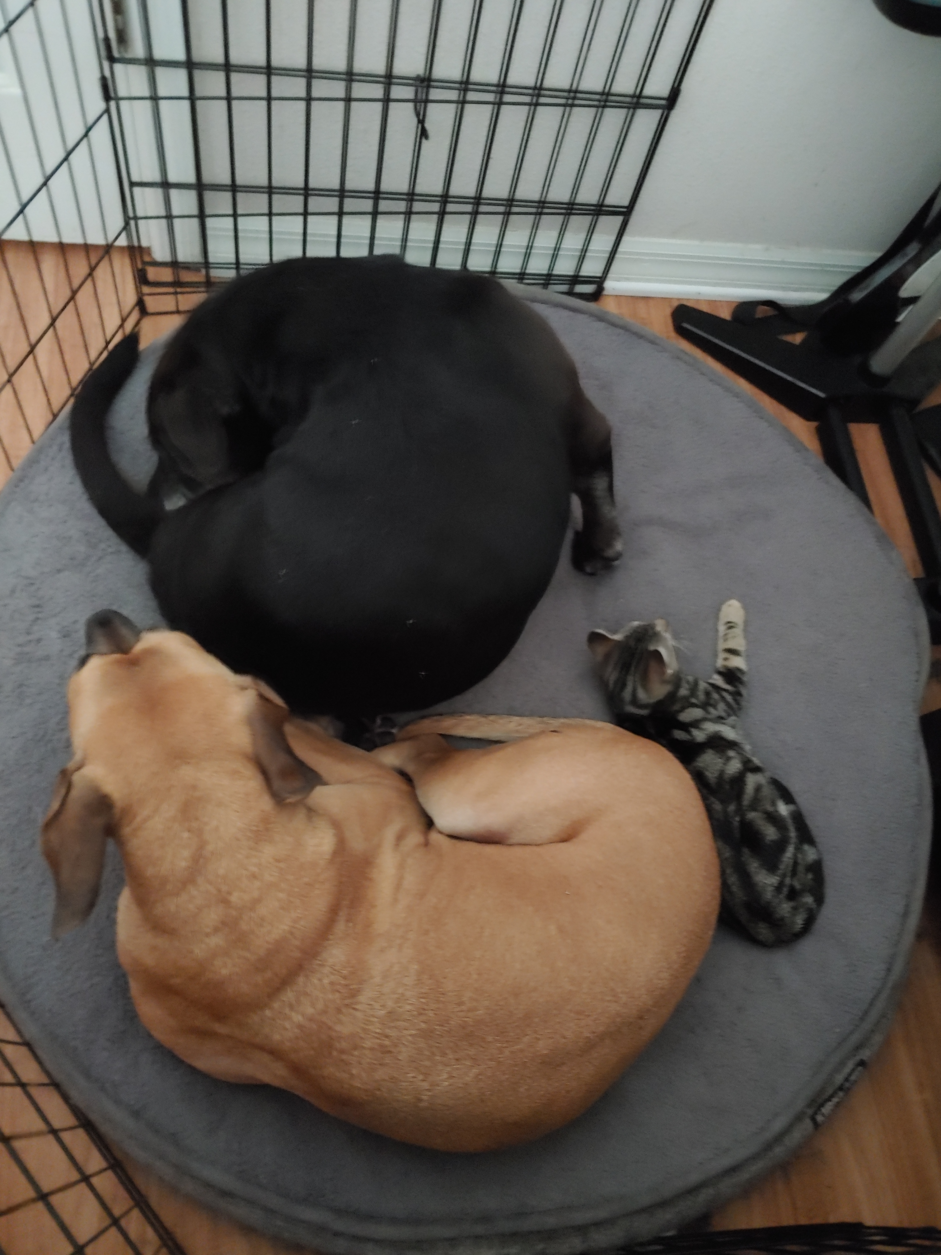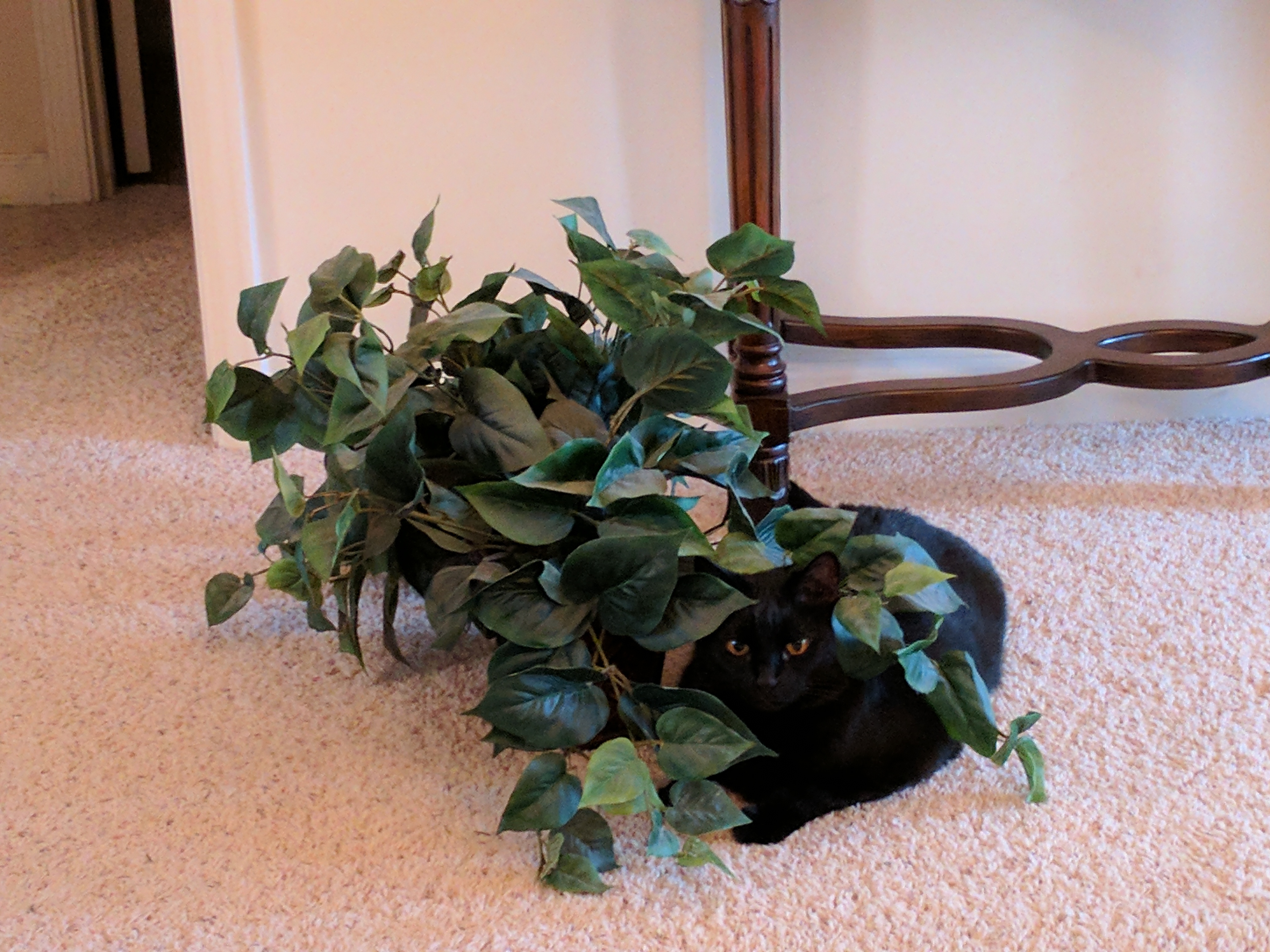 I love this thread idea! I have 2 dogs and a cat. Below is my cat Ninja, when she thinks she’s hiding.