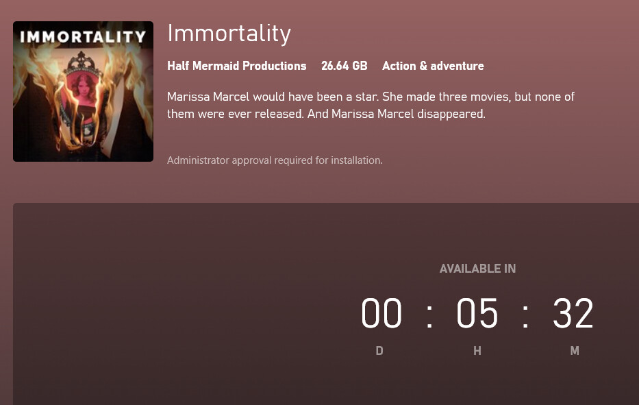 What happened to Marissa Marcel? This question lies at the heart of Immortality, the latest game from Sam Barlow (Her Story & Telling Lies) and Half Mermaid Productions. It is a full-motion video tour de force that explores three movies, none of which were ever released. The game is releasing day one into Xbox Game Pass for console, cloud, and PC. Slowly you will uncover the mystery behind it all during the course of one of the more engrossing and disturbing stories that I have ever experienced in a video game. Just how does it all work? Itâs best found out on your own, so join me for an incredibly light and spoiler-free review of perhaps the best experience in video games this year.