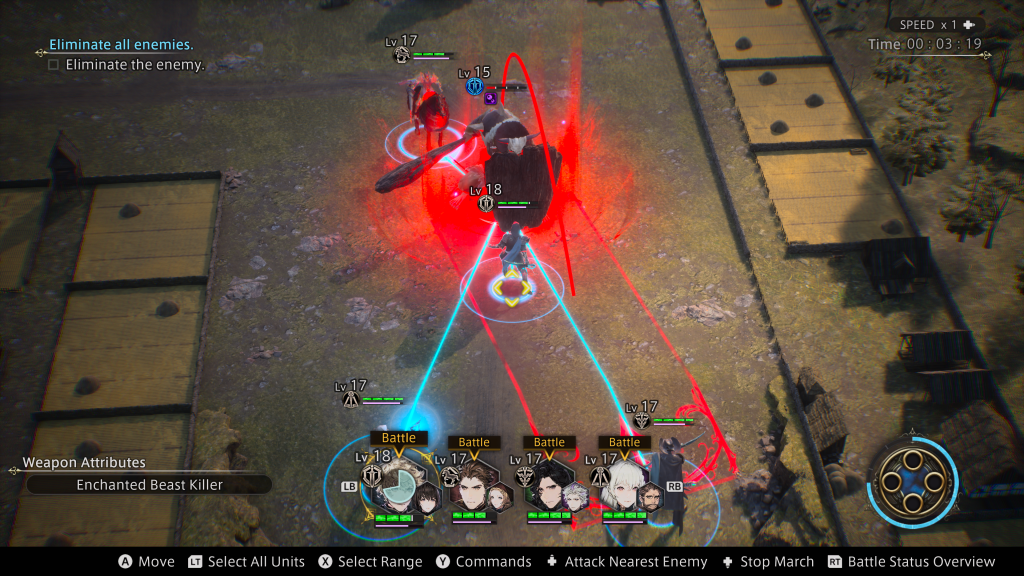 There’s plenty of upgrades you can, and will, need to get to ensure you’re not left behind while advancing story chapters. Positioning is key and thanks to fairly intuitive controls, your units feel good to control and command. Having a character like Andrias, a dagger wielding unit with good mobility, be able to launch behind an enemy and pull attention to himself while my other units do critical damage to their rear is very satisfying. And although the game does become area-of-effect heavy with its attacks later on, the game gives plenty of tools to round up large numbers of enemies for efficient whacking. And if things are going a bit too slow, you can always speed up time.