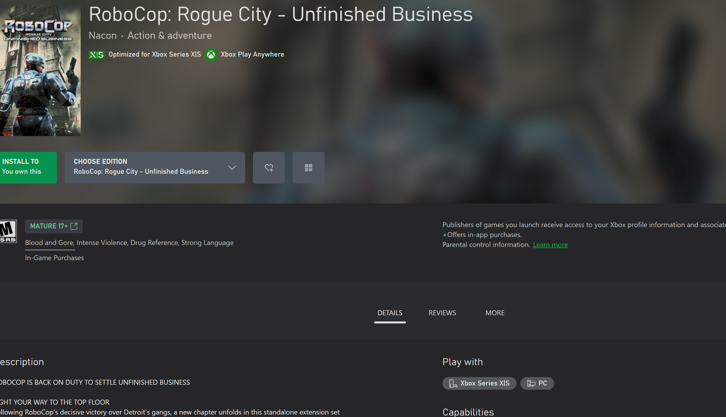 RoboCop Rogue City - Unfinished Business is now Play Anywhere