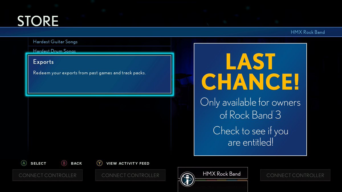 If you previously exported Rock Band 1, 2, Green Day, or Lego Rock Band in the 360/PS3 days, that export will be waiting for you to install on Rock Band 4 as long as you’re using the same account. You had to actually finish and complete the export back then to be eligible. 3’s export expired in December 2020.