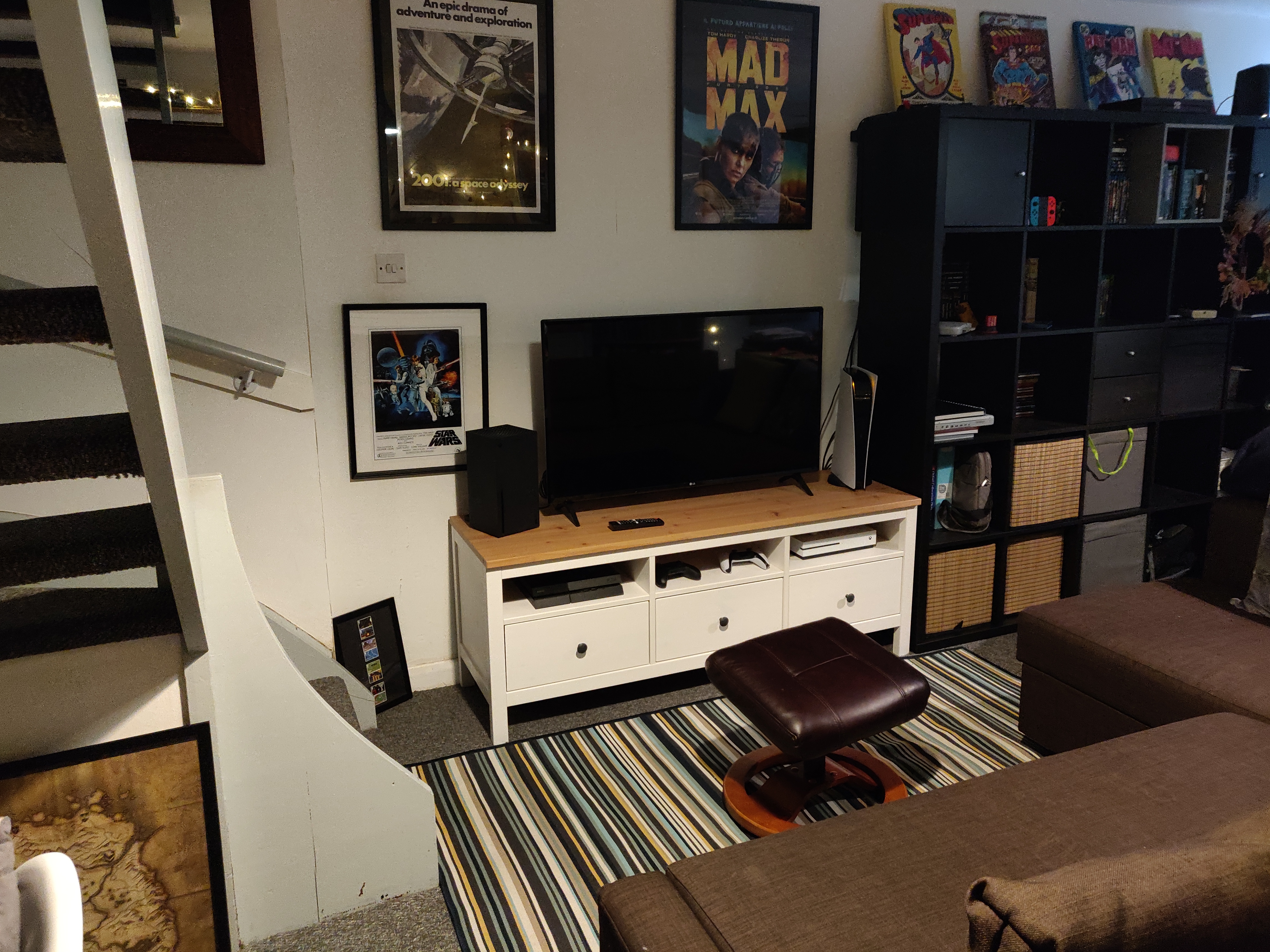 Sitting area with some Final Fantasy and Mass Effect artwork that I just recently framed and hung.