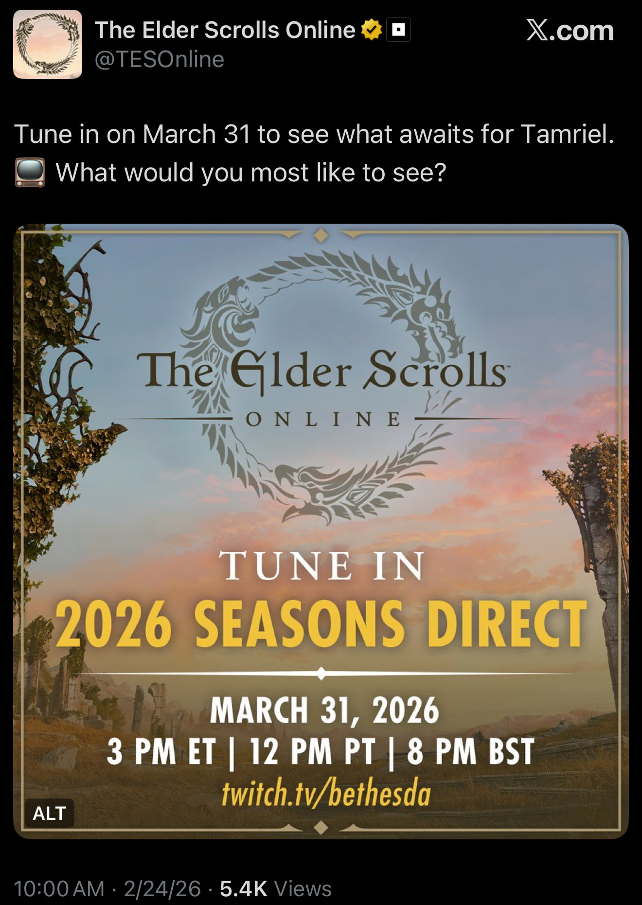 Oh, oh man. I did not think this was possible with ESO having different PC and Console update schedules. Let’s go!
