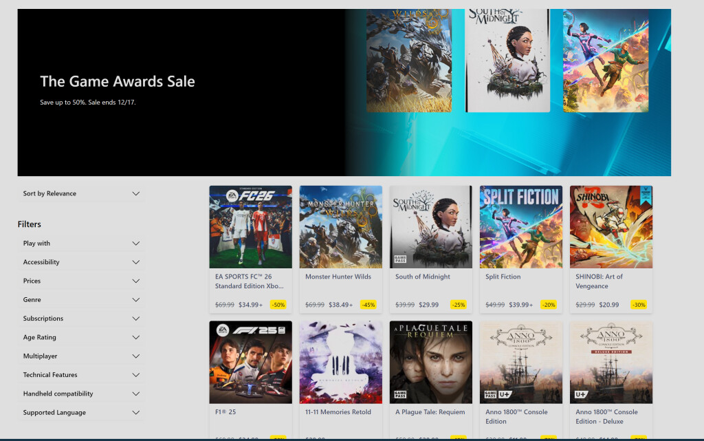 'The Game Awards' sale is now live on Xbox