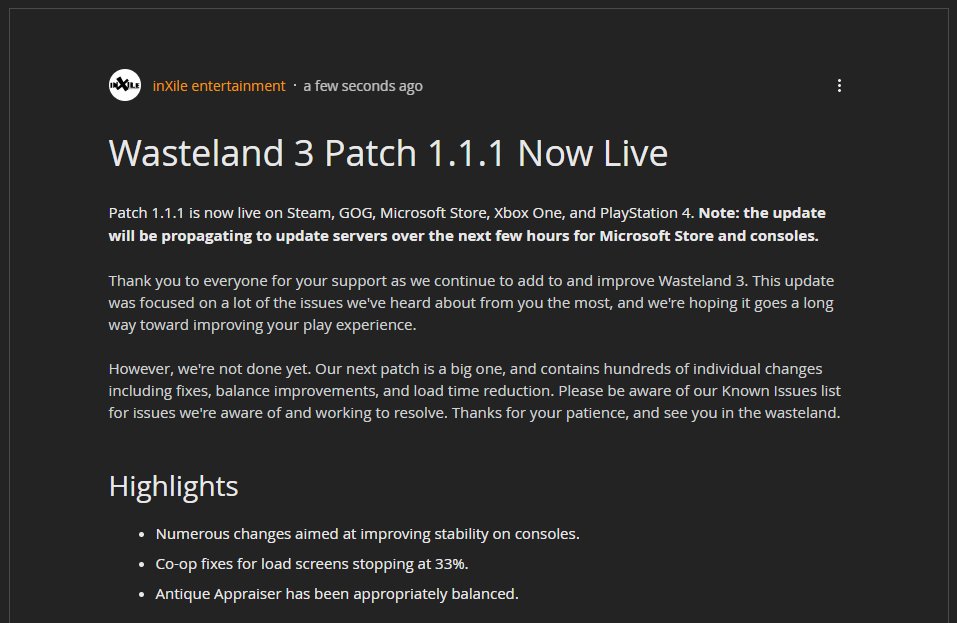 Patch 1.1.1 is now live on @Steam, @GOGcom, @MicrosoftStore, @Xbox One, and @PlayStation 4.