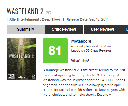 Keep in mind wasteland 2 has an 81 on metacritic, and considering this looks to be an improvement in every way i would be very suprised to see it go below that, unless they somehow make the story or gameplay bad.