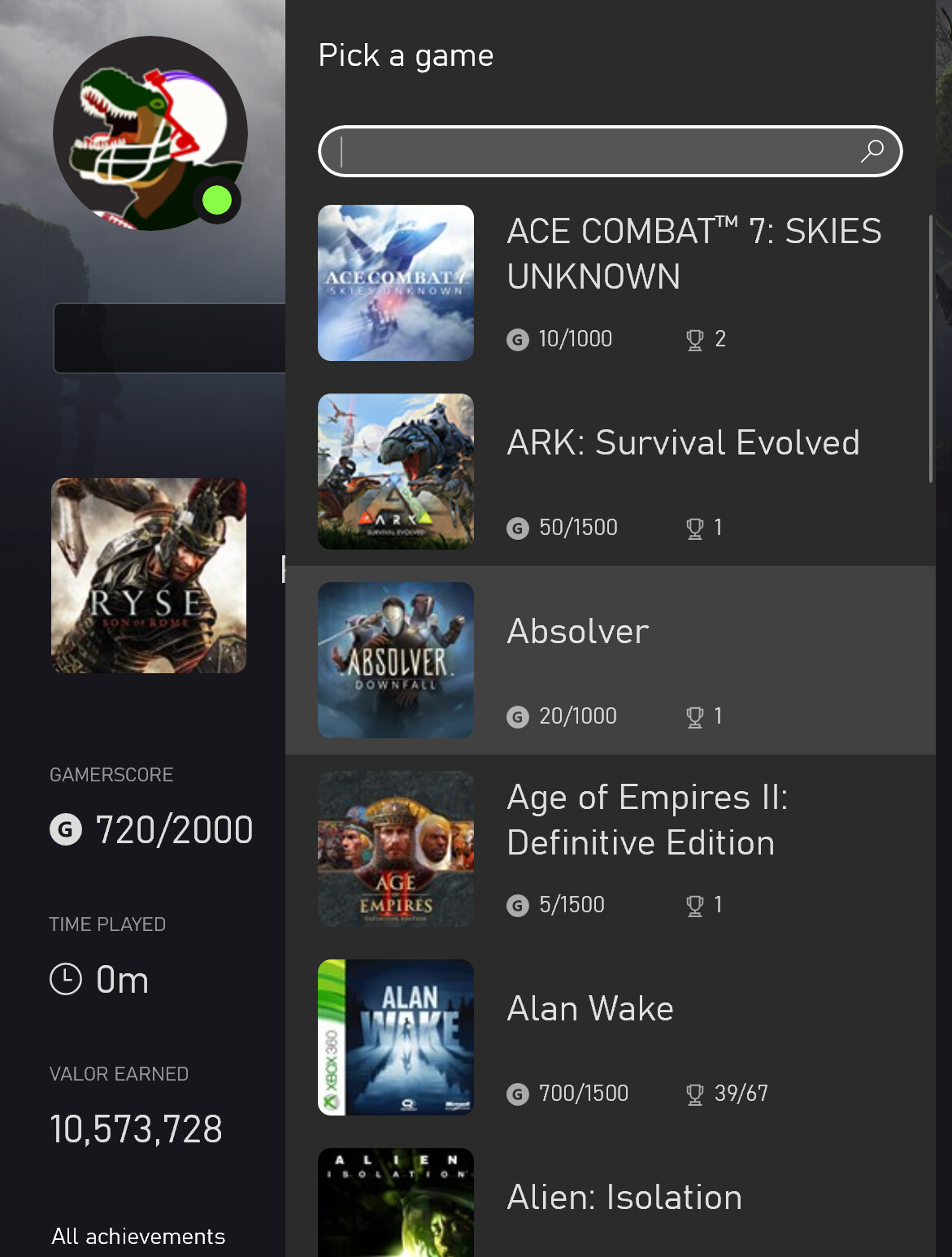Side note, it seems there are still some games that don’t have a time associated with them. I put days into Ryse and it’s showing I’ve played the game for 0 minutes.