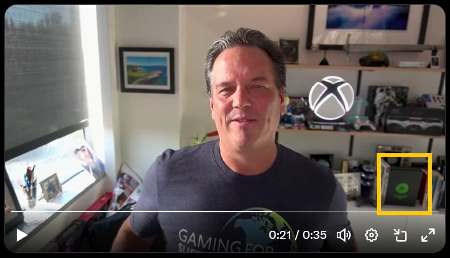 It can be seen on his shelf, lower right section, in this video clipped and reposted on Twitter: